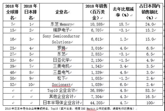 日本本土半導(dǎo)體銷售排名