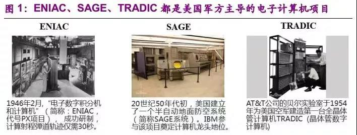 軍事對電子技術(shù)的需求,使得美國電子公司受益匪淺,它們的發(fā)展也是與美國軍方密切相關(guān)。這里我們可以以部分企業(yè)舉例說明,如 IBM進(jìn)入計算機(jī)領(lǐng)域后,主要客戶是弗吉尼亞州達(dá)爾格倫(Dahlgren)的海軍水面武器中心。IBM也因?yàn)閰⑴c了一個重要的軍事項(xiàng)目——“半自動地面環(huán)境探測系統(tǒng)”(簡稱:SAGE),奠定了它在計算機(jī)領(lǐng)域的領(lǐng)導(dǎo)地位。IBM 704和IBM 709也成為了行業(yè)標(biāo)準(zhǔn),其中IBM 704所用的構(gòu)想本來是為另一個軍方合同設(shè)計的。再如AT&T公司, AT&T公司的貝爾實(shí)驗(yàn)室于1954年為美國空軍建造第一臺全晶體管計算機(jī)TRADIC (晶體管數(shù)字計算機(jī)),但是AT&T公司被禁止從事商用計算機(jī)業(yè)務(wù)。再如達(dá)爾馬制造公司,很多人對它可能并不熟知,它在第二次世界大戰(zhàn)期間研制出了第一臺機(jī)載雷達(dá)天線。